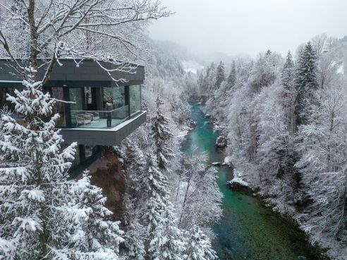 Die vier Design-Häuser von FourElements – Living by Berger schmiegen sich in Alleinlage in den Winterwald des Naturparks Gesäuse in der Steiermark. Hoch über der kristallklaren, plätschernden Salza sorgen Ruhe und Natur für eine unvergleichliche Auszeit. In den modernen Wohnwelten ein Ambiente vom Feinsten erleben, am Kaminfeuer Winterruhe spüren und Balance finden, sorgt für unvergessliche Wintertage. Über den Dingen schweben, zu zweit oder mit Freunden, Aktiv- oder Relaxurlaub, Privatleben at its best im Traumhaus.
